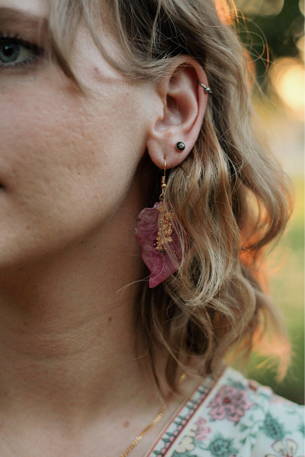 Disfruta de la belleza de la naturaleza a cualquier lugar que vayas con nuestros aretes Bugambilla. Hechos de Bugambilla, estos aretes te permiten llevar contigo un pedacito de naturaleza todo el tiempo. Estos aretes son perfectos para aquellos que valoran la conexión con el medio ambiente y quieren llevar un recordatorio de su belleza consigo.