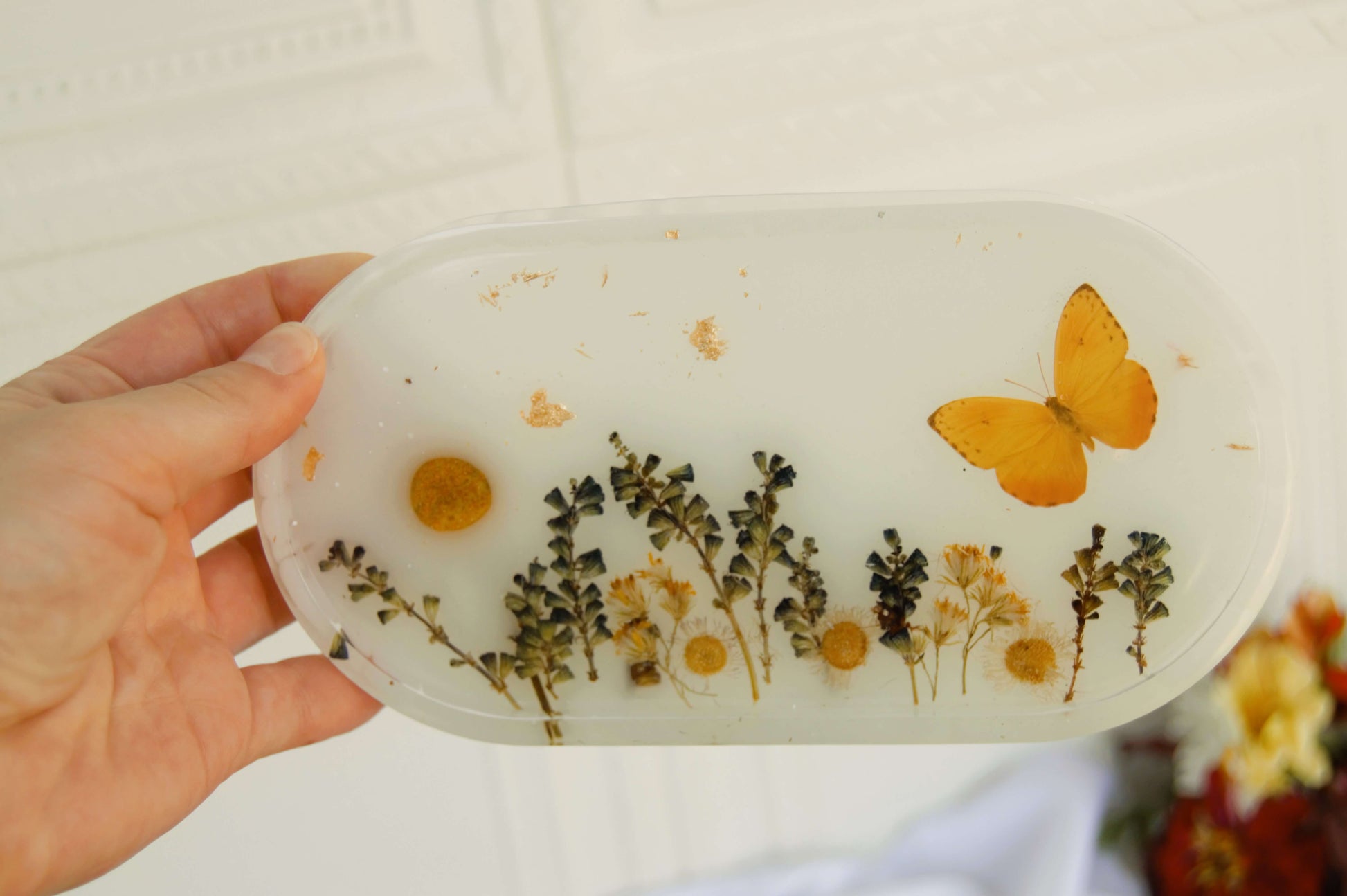 ¡Organiza tu joyería con estilo con nuestra Bandeja Floral! Hecha con una hermosa selección de flores naturales secadas, esta bandeja añadirá un toque de belleza natural a tu espacio. Una opción perfecta para los amantes de la naturaleza.