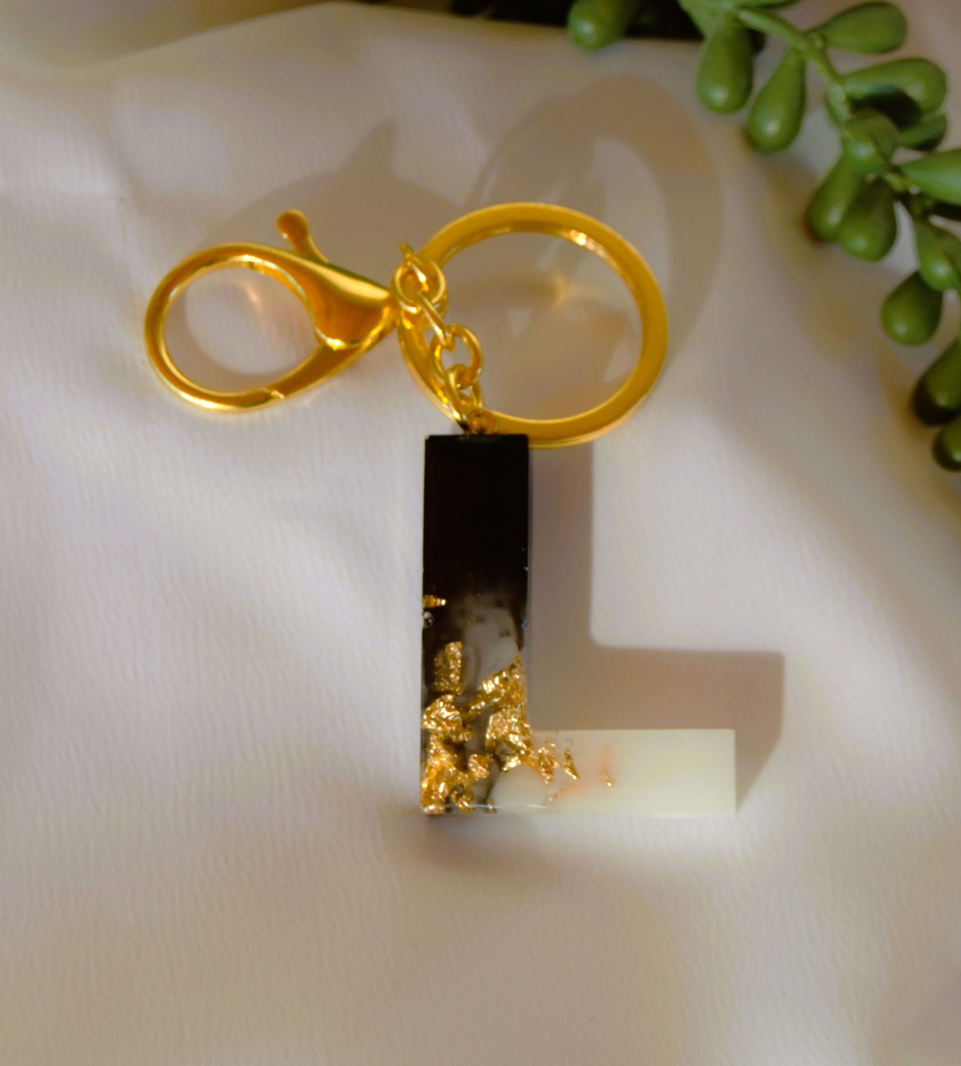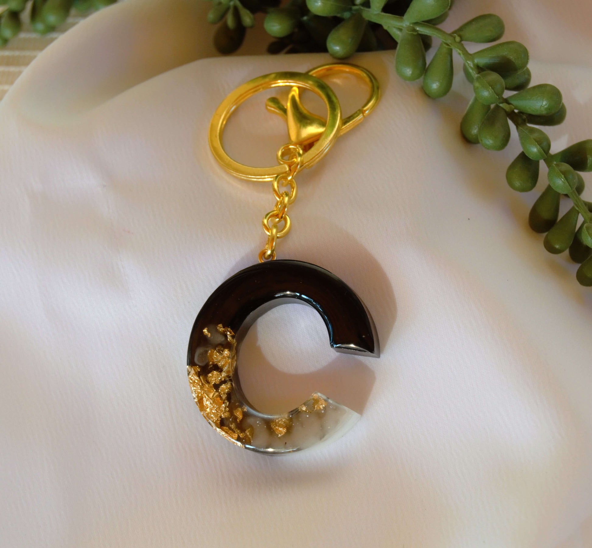 El Llavero es hecho de Resina epóxica grado alimenticio. Con colores negro, blanco y las hojas de oro o plata.