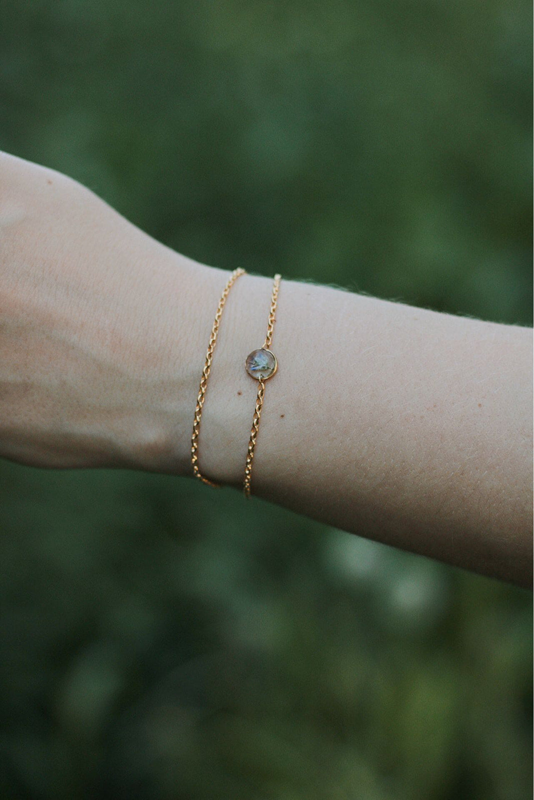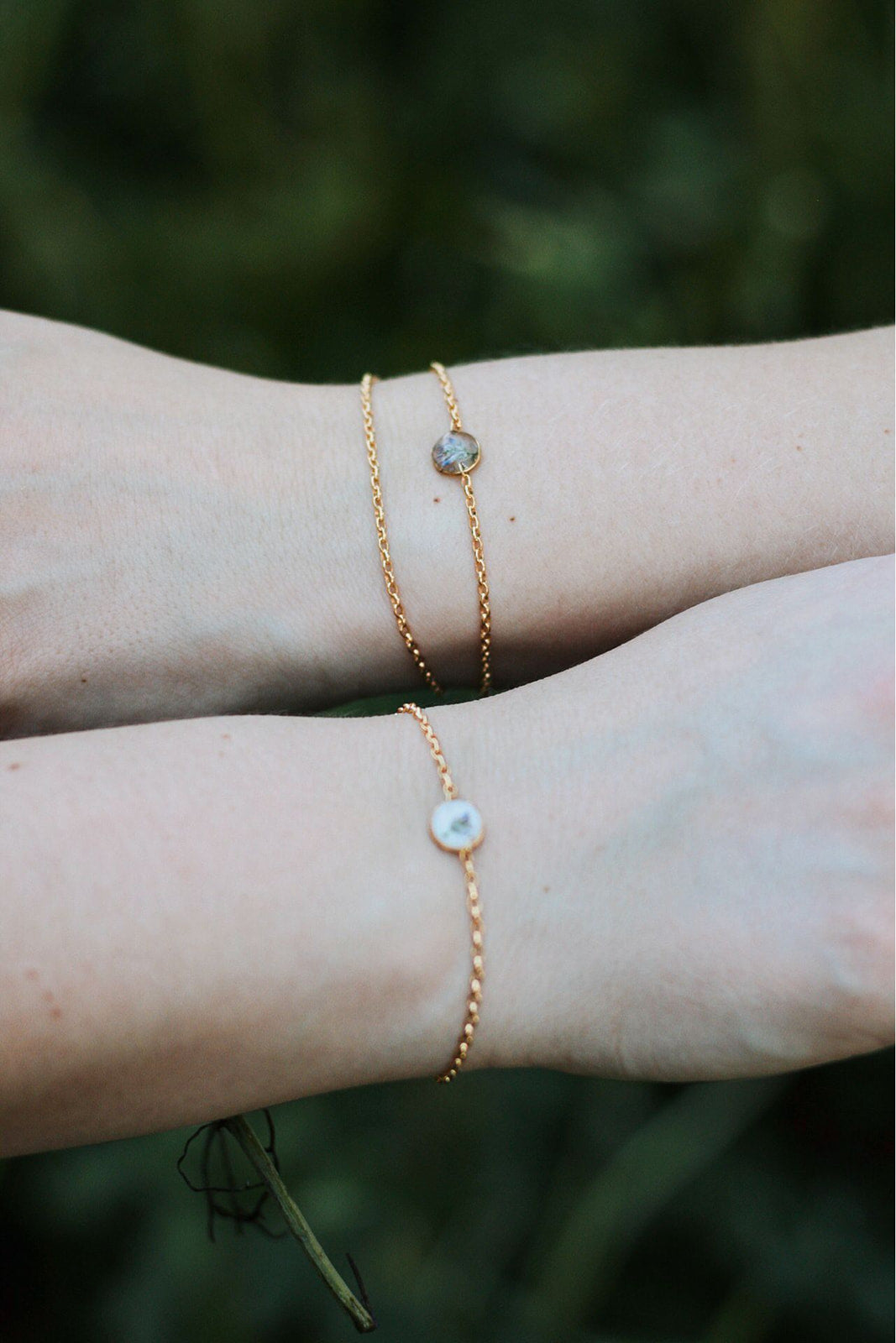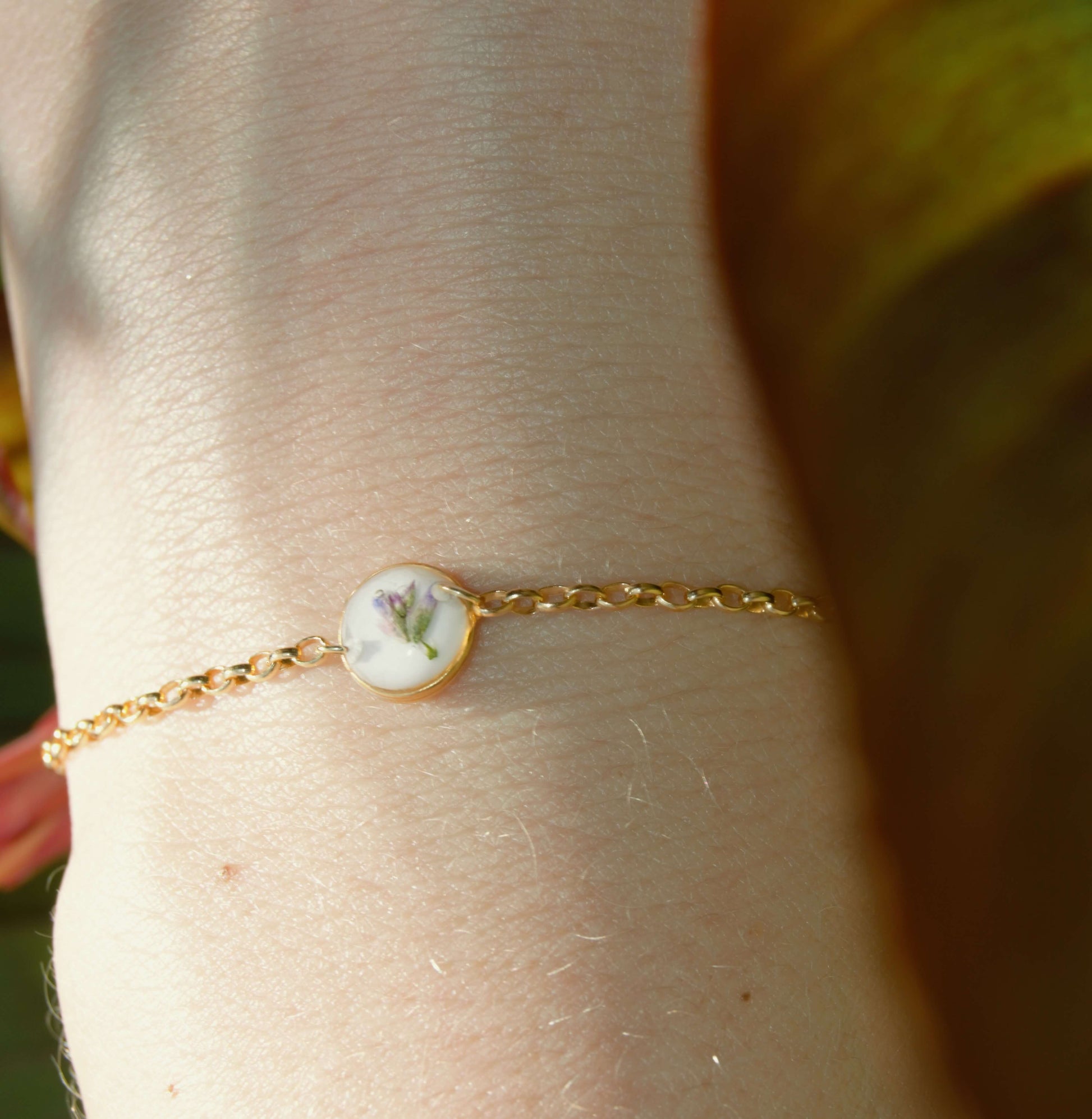 La pulsera Jasmine está diseñada para ser una declaración de estilo elegante y natural. Cuenta con flores naturales secadas y delicadamente encapsuladas con una cadena rellena de oro 14k, lo que le da un toque de lujo y sofisticación. Con este accesorio, puedes llevar una pequeña porción de la naturaleza contigo a donde quiera que vayas.