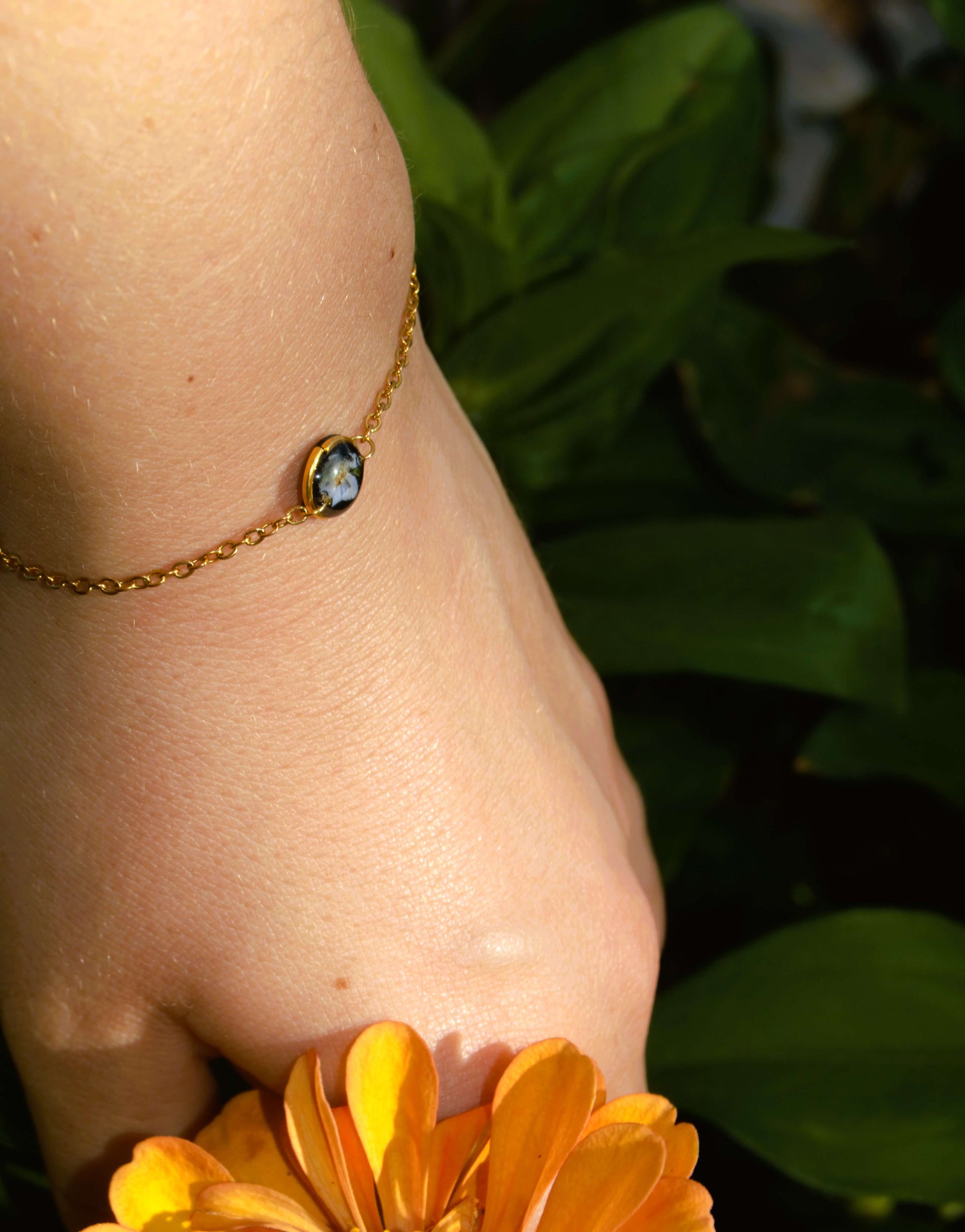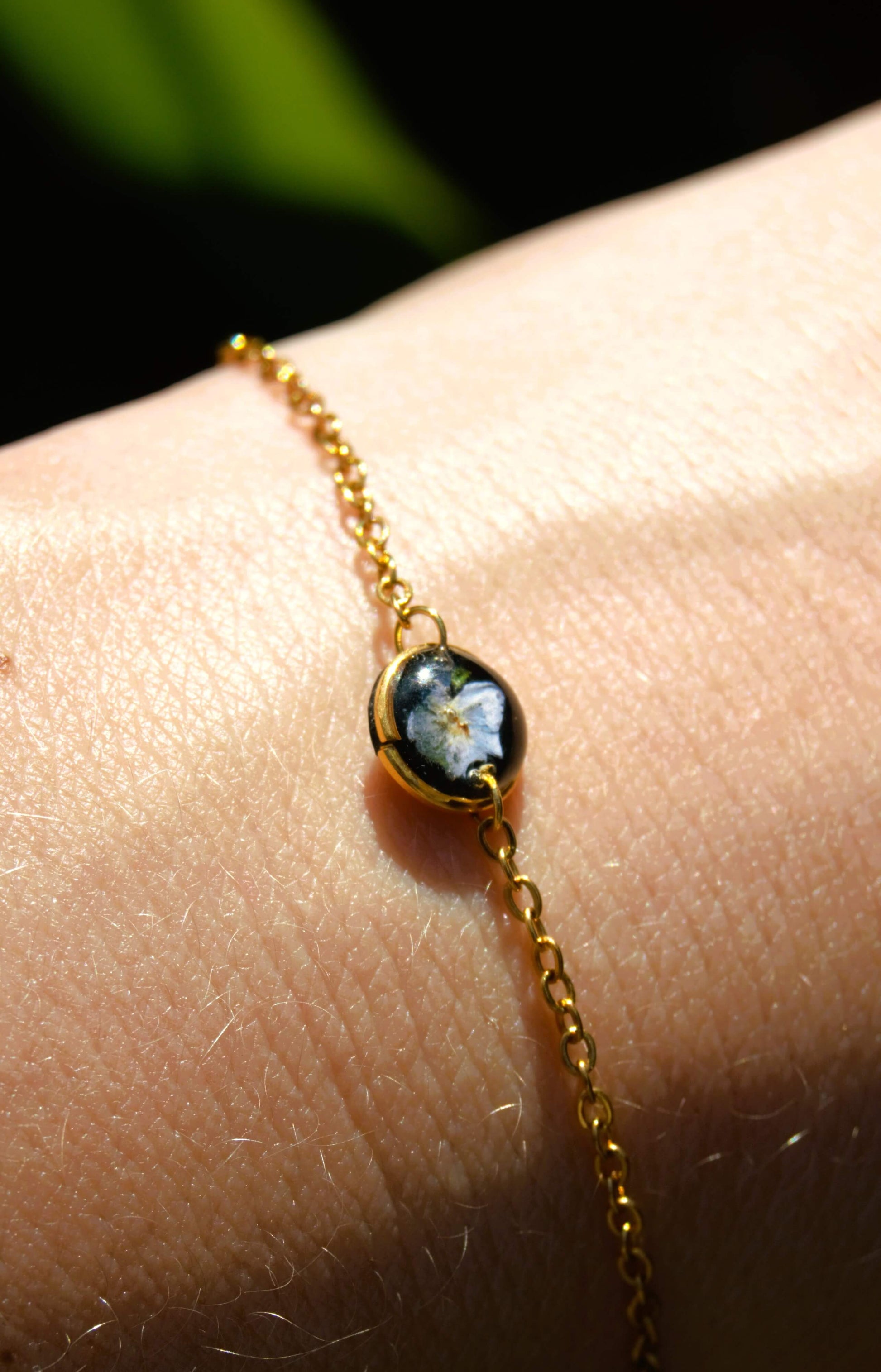 Esta pulsera está hecha con una hermosa flor natural de No me Olvides, para un toque natural. Para cualquier amante de la naturaleza y la moda.